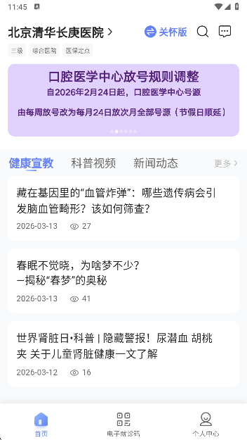掌上清华长庚APP支持线上预约挂号,实现无需到院,在线预约的便捷服务