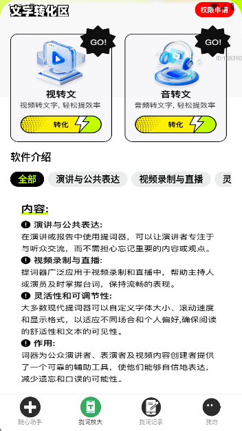 用户可以轻松通过视频和音频快速录入文本内容。应用利用智能技术将文字放大呈现,为您提供清晰的视觉提示,确保关键信息不被遗漏。