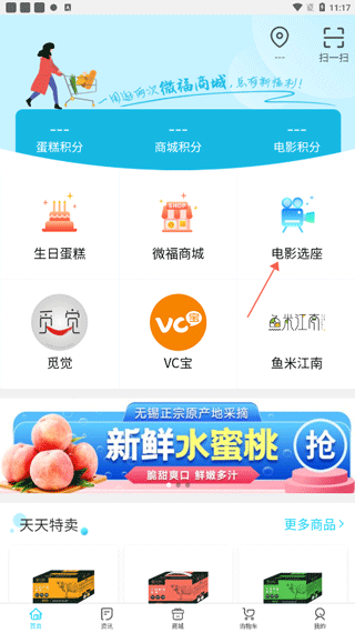 1、进入应用首页后,找到并点击蛋糕积分的图标入口,即可跳转至积分管理页面。