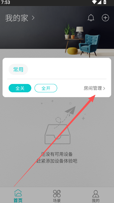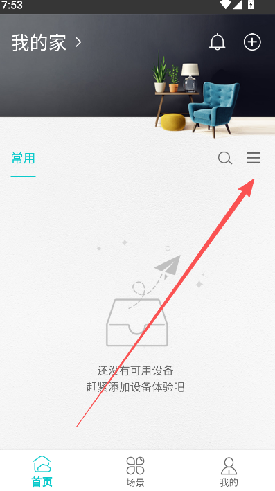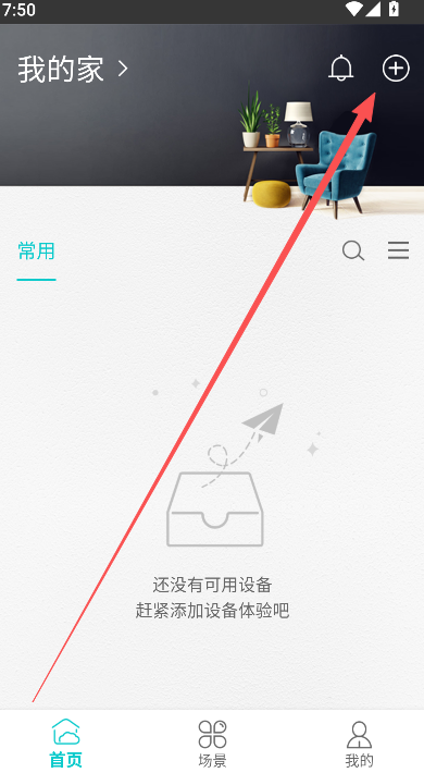 2、注册即登录,来到首页选择右上方的+选项,开始连接设备。