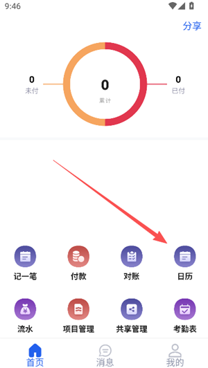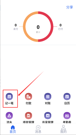 2、在首页中找到并点击“记一笔”功能入口,系统将自动跳转至记账信息填写页面。