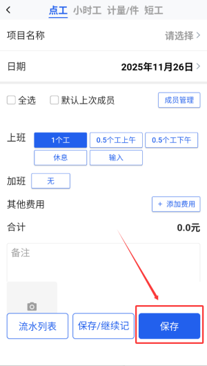 3、根据页面提示逐项填写相关工账资料,确认无误后点击保存按钮即可完成记录。