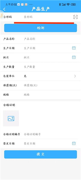 10、产品生产台账:产品生产是企业的核心内容,操作同样简单,依旧是点击“产品生产台账”,点击右上角“添加”,弹出生产台账页面: