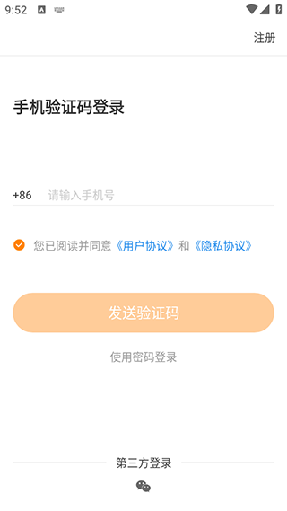 1、使用手机接收验证码登陆账号,如果没有账号会自动注册