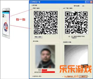 3、用户打开手机实名宝软件扫描网吧二维码(认证窗口中左上角),手机提示“你已经通过验证”后,在身份信息栏中显示用户信息,再用摄像头对用户正面进行拍照,对比是同一人后,点一键开户后,身份信息会自动填入到PUBWIN系统中,如同用刷卡器开卡一样。