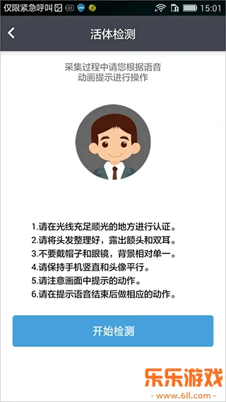 4、点开始检测,按免冠、正面、无镜、顺光、露额的原则进行拍照
