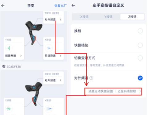 进入电变按键自定义设置,选择【对外频道-码表智联】并保存配置。即使此前已进行过相关设置,也需重新保存以确保功能生效。