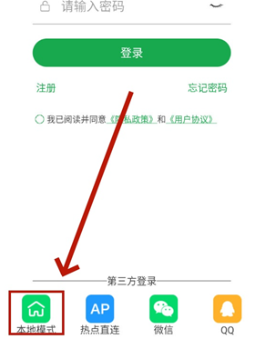 1、进入之后勾选协议,点击连接方式,比如小编点击本地模式