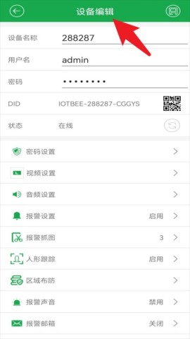 4、设备编辑页面为用户提供丰富的设置选项,如密码、视频、音频和报警等,便于根据实际需求灵活调整。