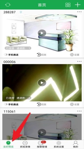 2、首页展示已添加设备的视频画面,用户可直接点击进入实时预览,便于远程监控。
