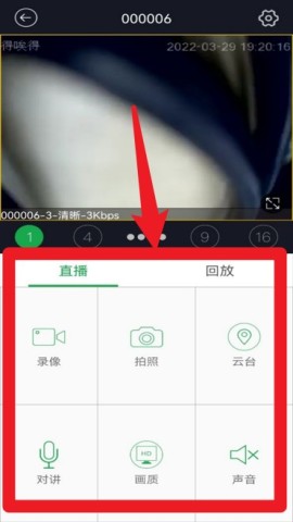 3、在实时预览中,可以进行录像、拍照、云台控制、对讲、画质调整及声音开关等多项操作。