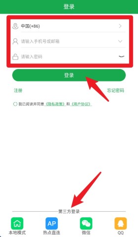 1、登录页面支持手机号、邮箱及密码登录,也可以通过微信、QQ等快速第三方方式进行登录。