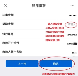 5、录入提取金额,点击确认完成无房租房提取业务操作。