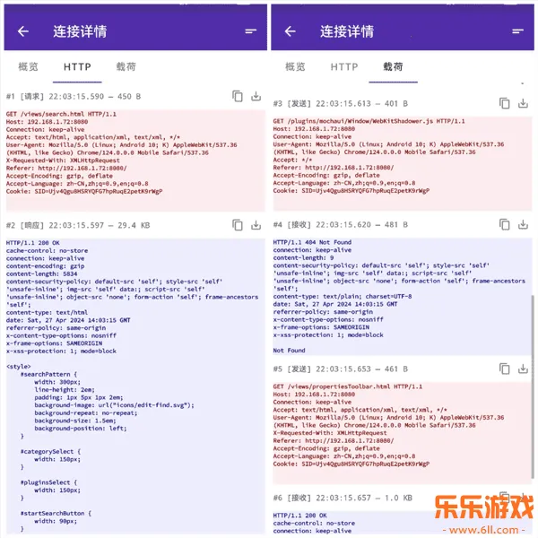 此外,HTTP以及载荷选项可以清晰看到这条TCP连接,所请求的内容和响应的内容: