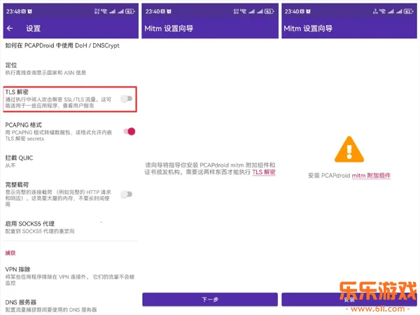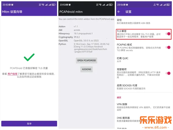 安装完毕后,使用PCAPdroid mitm打开PCAPdropid,在设置里便可成功勾选启用TLS解密功能: