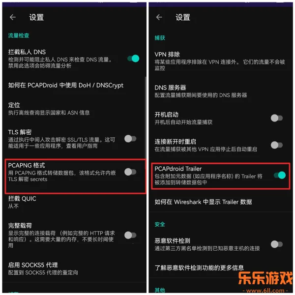 ①开启了PCAPdroid Trailer选项,并禁用了PCAPNG格式(禁用PCAPNG格式依然不影响你转储PCAP格式文件):