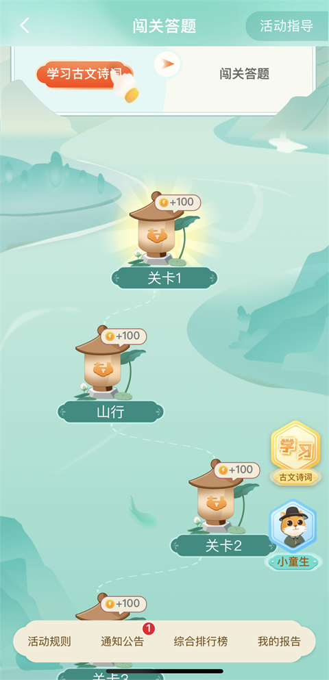复习巩固本学期及新学年的课标诗词篇目,在这个过程中,学生会获取相应的能量值及称号,会对活动的最终成绩产生直接影响。