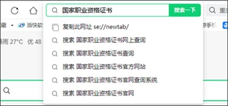 2、在浏览器的地址输入栏里输入:国家职业资格证书、进入国家职业资格证书查询页面。