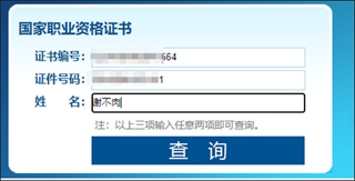 3、输入证件号码、证书编号、准考证号、姓名中的任意两项内容都可以查询,小编输入的是证件号码和姓名,直接点击”查询“。