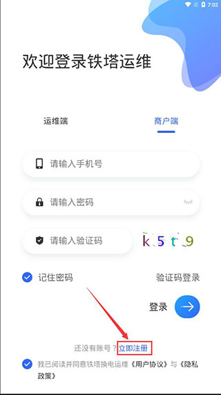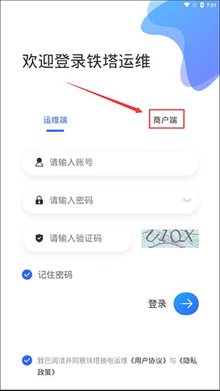 1、打开软件之后,默认是运维端页面,这里没有注册入口,所以我们要点击【商户端】按钮,切换至此页面。