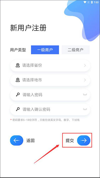 4、根据用户类型,填写相应的省份、地市、密码等信息,然后点击【提交】按钮。