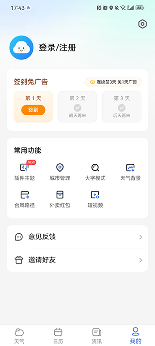 用户点击下方日历,即可查看日历信息以及天气信息。