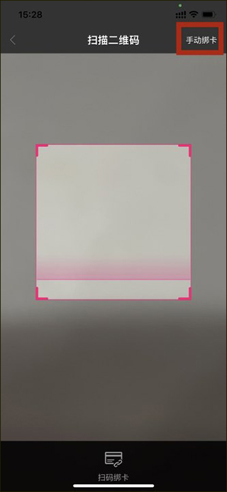 3、在扫描二维码的页面山上扫码或是手动绑卡,点击““手动绑卡”