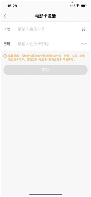若未绑定,点击“绑定影城卡”,输入定制卡的卡号、密码及验证码(验证码发送至注册手机号),确认绑定。