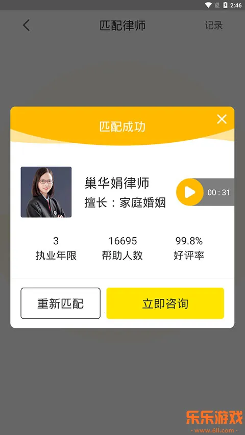 智能匹配高效:采用AI智能+人工服务双驱动模式,能快速(约1分钟内)为用户匹配合适的律师,覆盖婚姻、劳动、合同、交通事故等常见法律领域。
