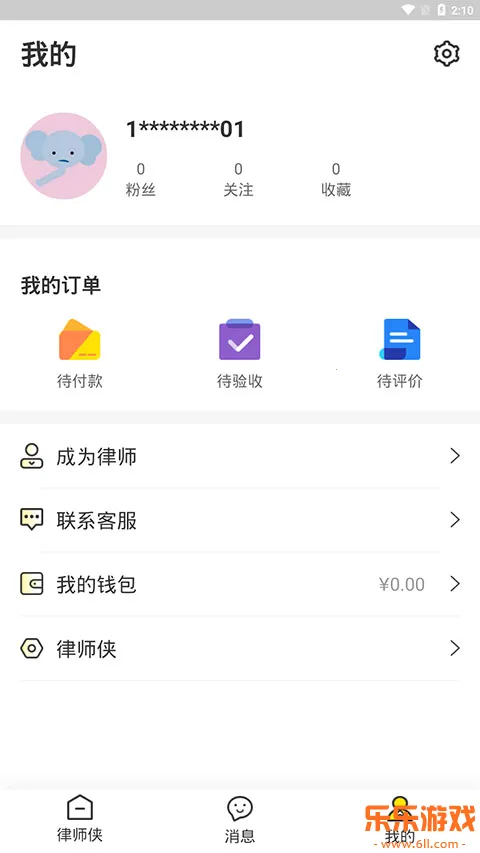 1、登录软件后,来到我的页面,然后找到【成为律师】入口并点击进入。