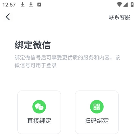 3、有两种绑定方式:【直接绑定】和【扫码绑定】,选择适合你的方式进行绑定。