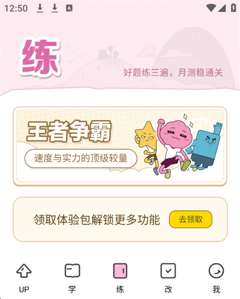 5、在【练】页面,点击【去领取】,即可获得14天的伴学服务。