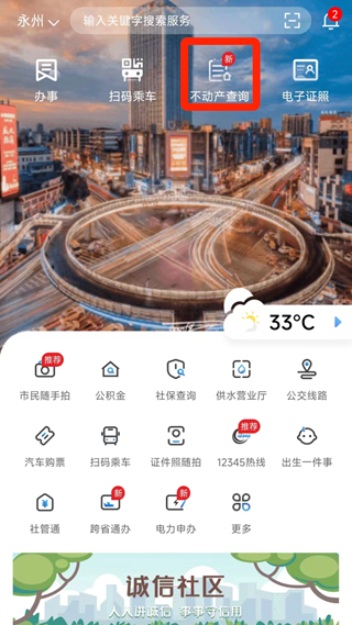 市民只需打开我的永州app,点击首页顶部“不动产查询”,即可使用该服务。