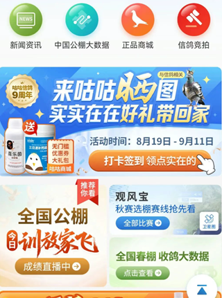 咕咕信鸽app下载官方是一款专为养鸽人用户们设计的软件,提供专业赛事信息资讯给到大家,让广大用户们可以享受轻松便捷的网上观赛体验,为方便大家更好的看直播,还有专门的赛程服务给到大家,便于大家及时管理调整时间,以便于更适配最新需求。