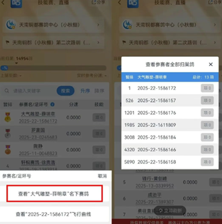 可一键查询“名下赛鸽”和“飞行曲线”
