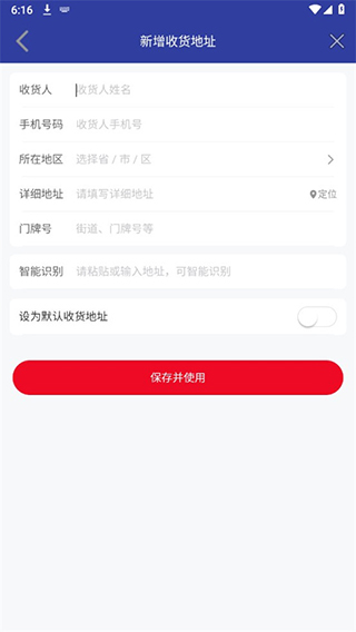 5、输入收货人、手机号码、所在地区等详细信息,点击保存并使用即可添加成功。