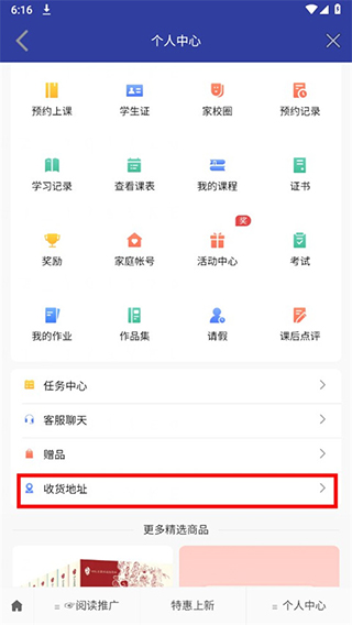 3、进入个人中心页面,下滑找到收货地址并点击进入;