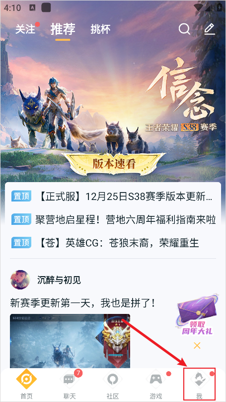 1、进入王者营地主界面后,点击屏幕底部导航栏中的“我”选项。