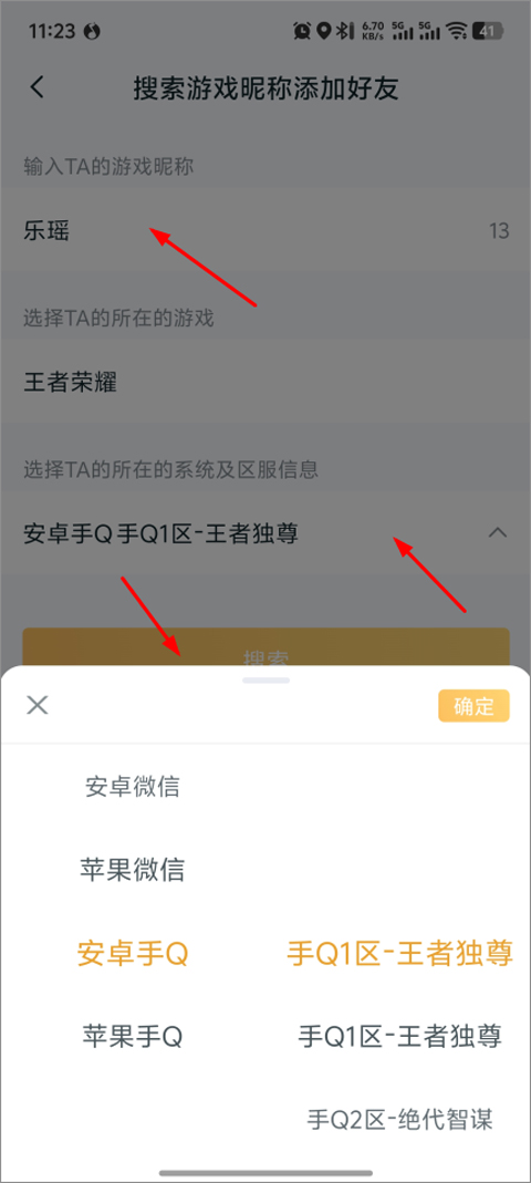 3、输入好友游戏昵称,以及选择游戏系统区服信息;