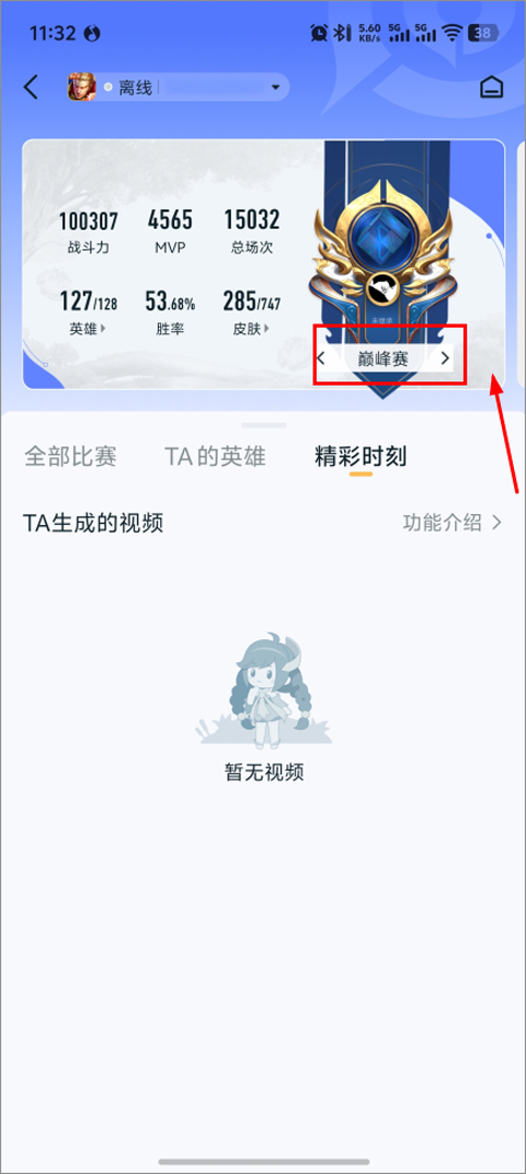 5、另外,点击上方段位图标下的“段位”还可切换至“巅峰赛”查看好友的巅峰排名。