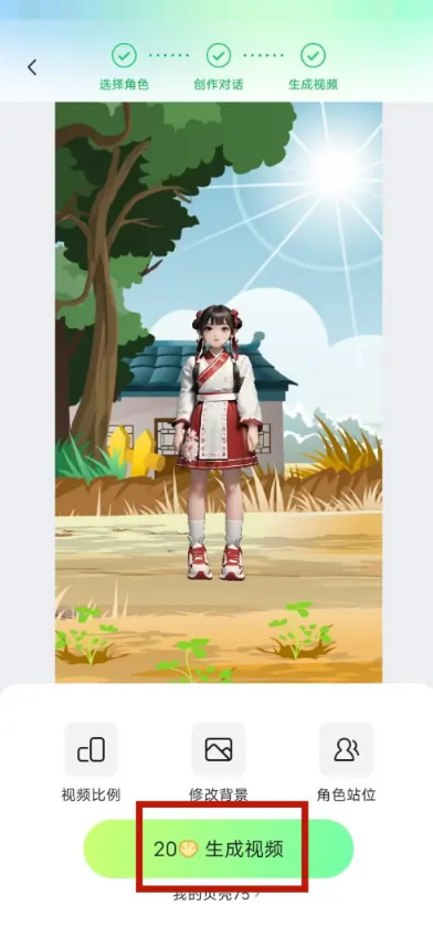 9.完成角色设置,点击生成视频,提交众影AI软件完成操作。