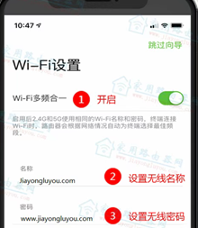如下图示是以迅捷双频千兆的无线路由器为例,路由器默认开启了多(双)频合一的功能。然后设置WiFi名称和密码,设置完同样点击下一步。
