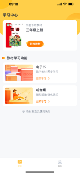 在“学习”界面点击“ 激活教材”进入资源激活引导;这里提供了两种方式进行资源激活,任选一种即可。