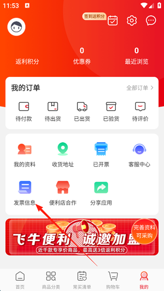 1、打开大润发e路发App,登录之后,完善商户资料