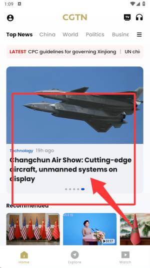 3、进入CGTN后,你将看到Home主页及导航菜单,浏览不同的新闻类别、专题报道或视频内容,通过滑动或点击进行浏览
