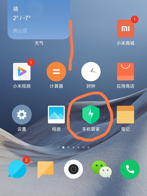 找到小米手机上的“手机管家”APP,这个就是设置预警的关键。