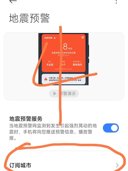 预警中心里面选择预订的城市,把这个设置好就完成了地震预警的设置。