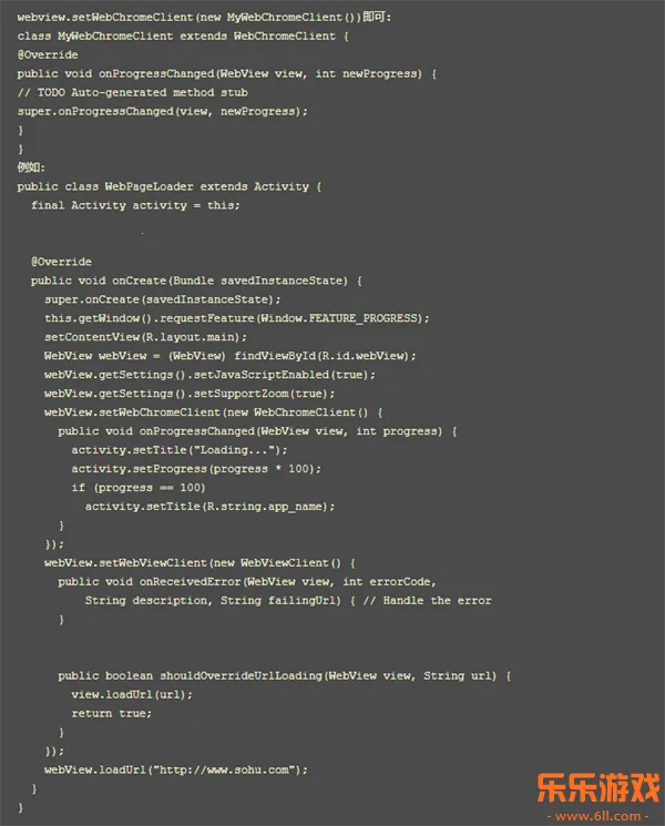 如果需要监视加载进度的,需要创建一个自己的WebChromeClient类,并重载方法onProgressChanged,再