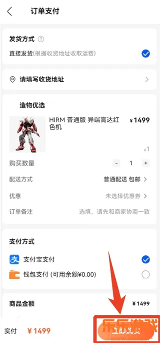 3、选择收货地址,确认购买数量和支付方式,再次点击右下角的【立即购买】就可以了。