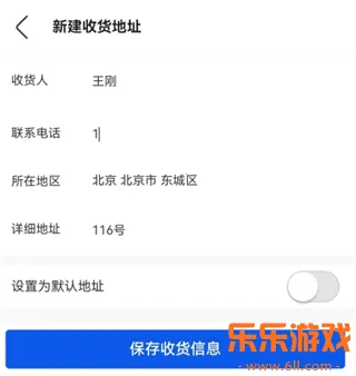 3、输入收货人的名字、电话、地址,点击【保存收货信息】,也能将这个地址设为默认地址。